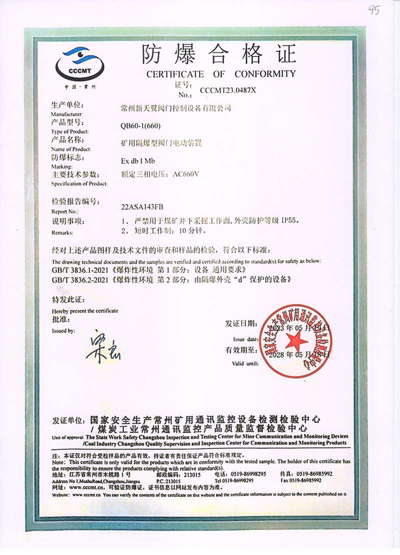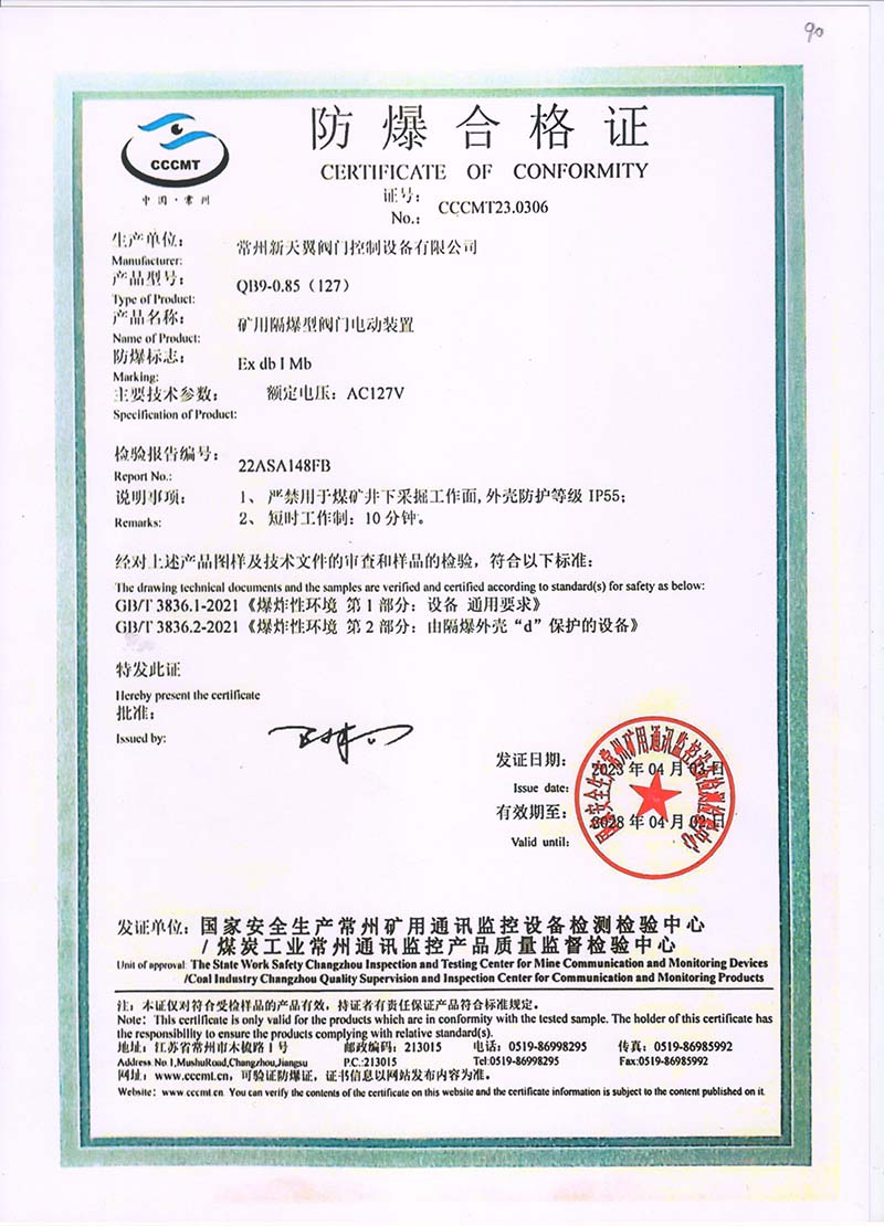 隔爆型QB QBZ QBT 220380中國國家強制性產(chǎn)品認證證書107.1
