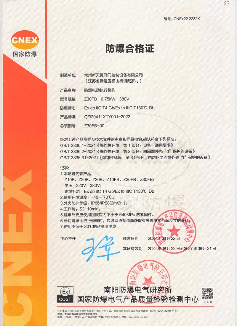 防爆Z10B Z10FB國家強制性產(chǎn)品認證CT4證書109.2