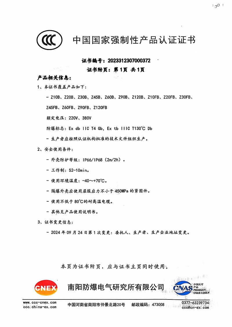防爆Z10B Z10FB中國國家強制性產(chǎn)品認證證書109.1